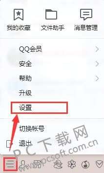 1、登录QQ2018后,打开主界面,然后点击左下角的图标,然后再上拉栏里选择“设置”选项。