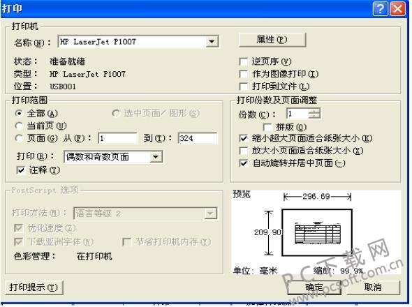 8、出现打印对话框:注意:“缩小超大页面适合纸张大小”和“放大小页面纸张大小”前页的勾不要选。点确定后,即可打印