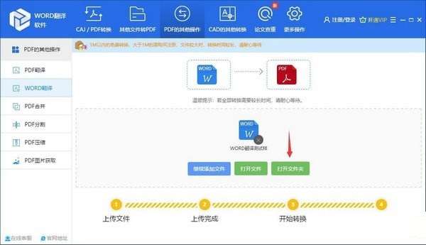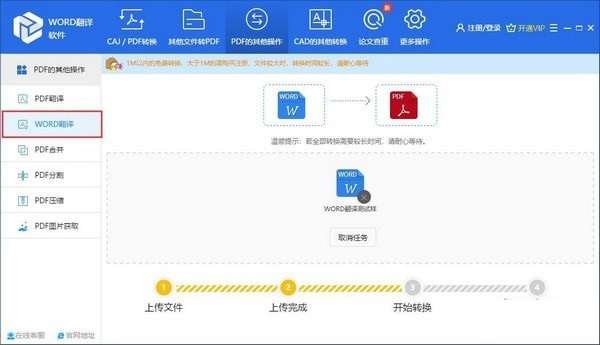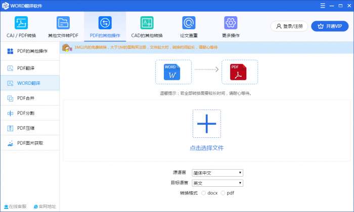 软件除了支持Word翻译外,还支持PDF翻译以及各类文档转换功能。