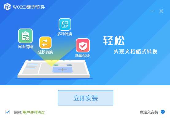 3.双击打开,进入WORD翻译软件软件安装界面,点击同意,点击立即安装