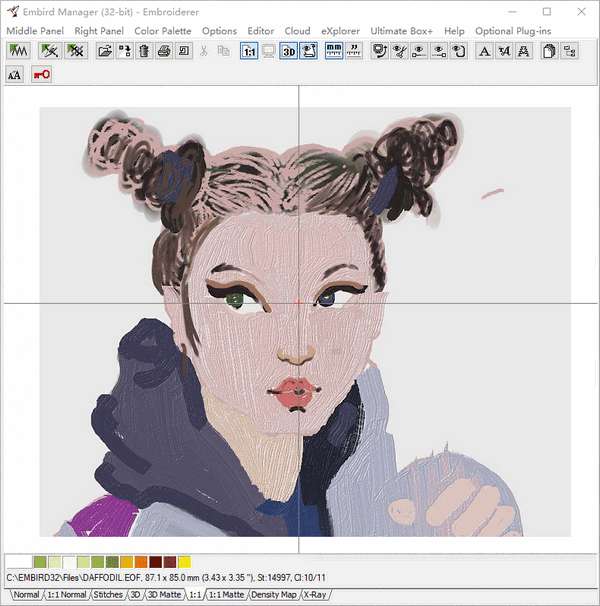 5.为所有三个对象生成针迹。肖像画完了。将设计保存到Studio * .EOF文件中。使用主菜单“设计>编译并放入嵌入式编辑器”功能将设计放入编辑器以保存所需的绣花格式。如果您不是Sfumato Stitch的注册用户,则禁用此命令。