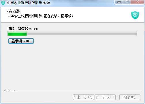 3、中国农行个人网上银行安全控件软件正在安装,我们耐心等待