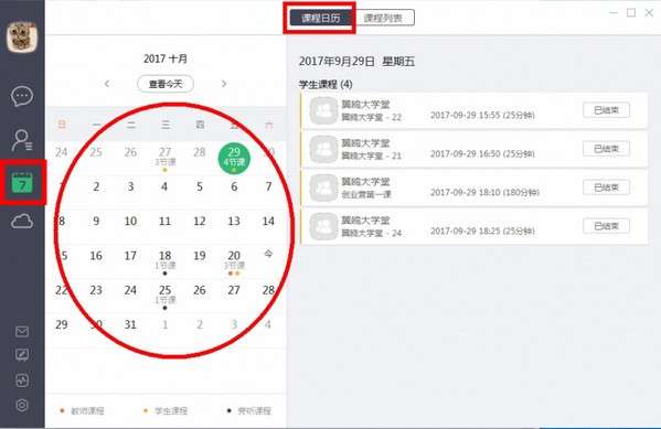 在左侧功能栏中选择【课程】,可查看目前已加入班级的全部课程,以日历形式标注清晰明了。