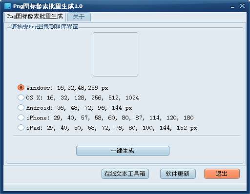 Png图标像素批量生成是一款能将PNG图片快速生成图标的工具,软件能够批量生成各种平台的图片大小格式,对于软件制作人员来说,这款工具非常便利。