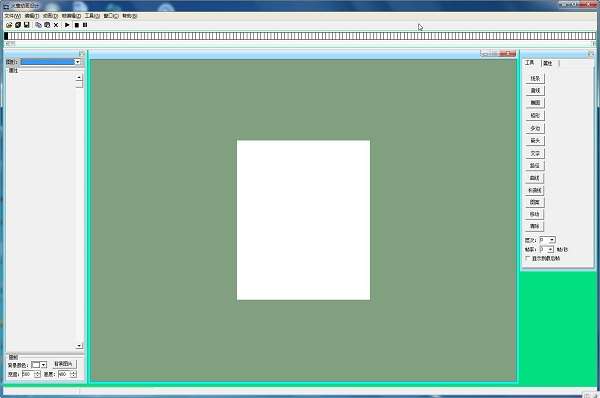 2.绘制动画。从窗口右边的工具选项卡选择图形工具后,在画板上按下左键移动便可绘制图形,在属性选项卡里可对选中的工具进行设置。也可以从菜单“动画/绘制元素”打开新窗口绘制。