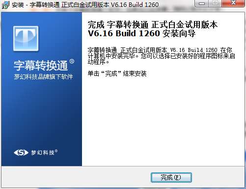 9.点击完成,字幕转换通软件安装成功