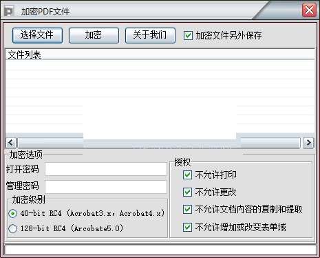 加密PDF文件软件中文版是一款十分出色的PDF文件加密工具,加密PDF文件软件官方版能够支持用户通过简单三两步快速加密文件,支持用户自定义设置打开密码与权限密码,加密PDF文件软件中文版具备不允许打印、不允许更改、不允许文档内容的复制和提取等多种权限设置。