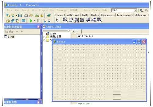 打开delphi 7开发工具,默认已经新建一个窗口工程。