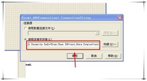双击Form窗体中ADOConnection1控件,打开ADOConnection 连接字符串配置窗口。如图所示,点击“构建……”按钮。