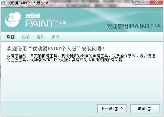 3.双击打开,进入优动漫PAINT软件界面,点击下一步