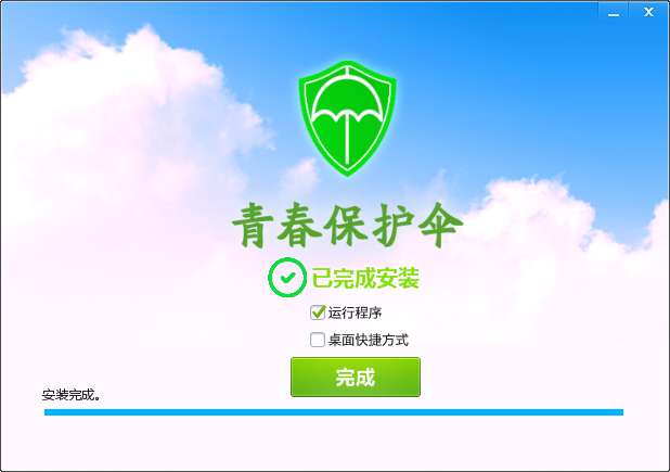 4.点击完成,青春保护伞软件安装成功