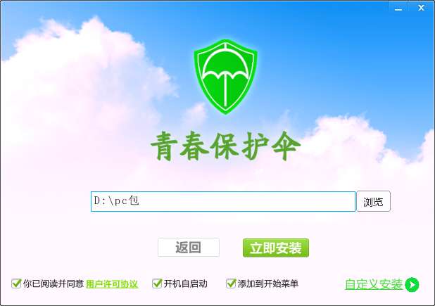 3.双击打开,进入青春保护伞软件界面,选择安装位置,点击下一步