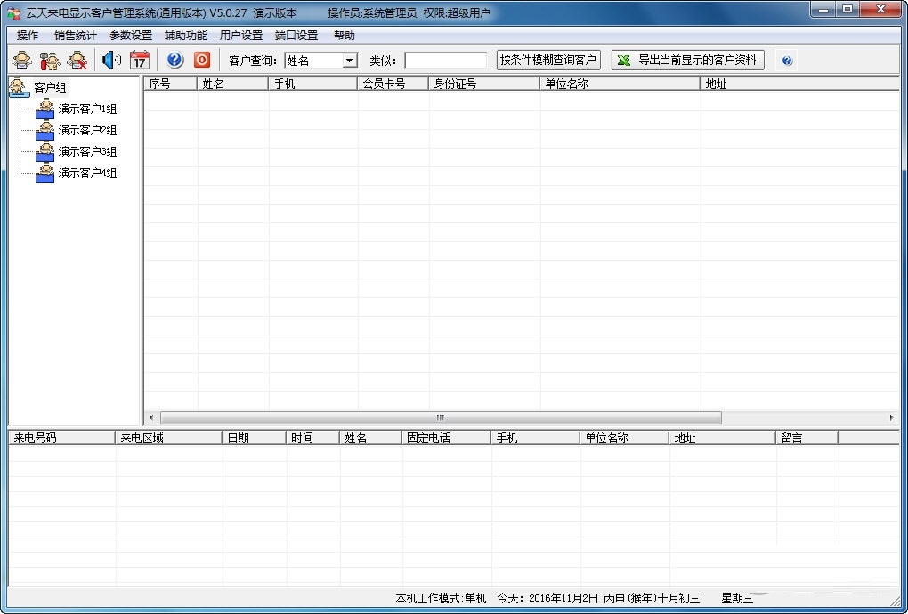 云天来电显示客户管理系统软件功能
