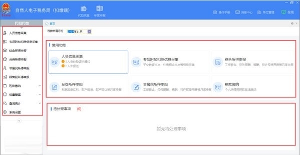 人员信息采集:根据《个人所得税基础信息表(A表)》的要求采集相关信息,系统采用先报送人员信息再填写报表的方式。