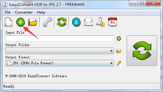 1、打开Easy2Convert HDR to JPG显示软件的转换界面,点击添加