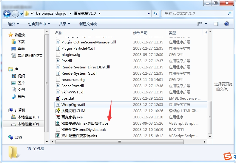 1、将您需要的附件包进行快速的下载,解压之后,点击双击配置百变家装.vbs.exe进行快速的配置;
