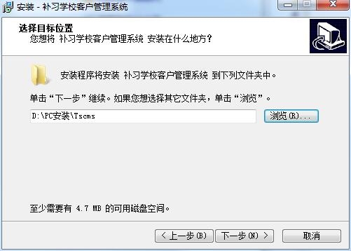 3、提示您设置一个快捷方式的保存文件夹,一般都是默认“补习学校客户管理系统”