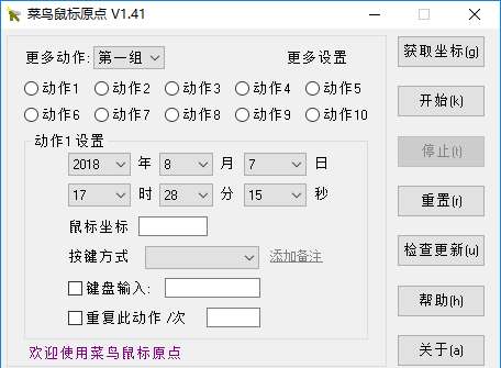 菜鸟鼠标原点是一款模拟鼠标点击的软件,可以帮你完成你想要的鼠标点击事件!它能在无人监控的情况下,按照你的设置,自动完成鼠标移动和点击事件,相对于按键精灵来说,菜鸟鼠标原点这款软件更加易用。有需要的朋友快来下载试用吧!