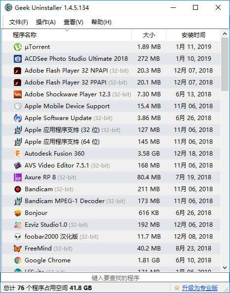 1、GeekUninstaller是一个免费的专业卸载软件,体积为1.7M左右。