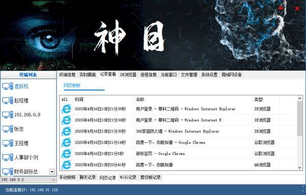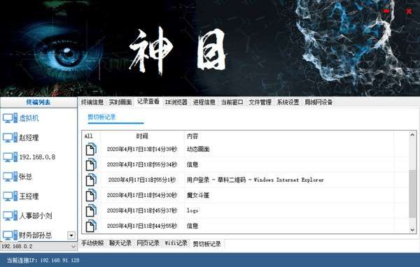 帅乾神目电脑监控系统最新版是款安全可靠且专业性强大的远程监控软件,帅乾神目电脑监控系统官方版主要分为控制端和被控端,帅乾神目电脑监控系统主要用于监控电脑、控制电脑,支持终端信息、远程控制、终端聊天记录、终端网页记录等功能!