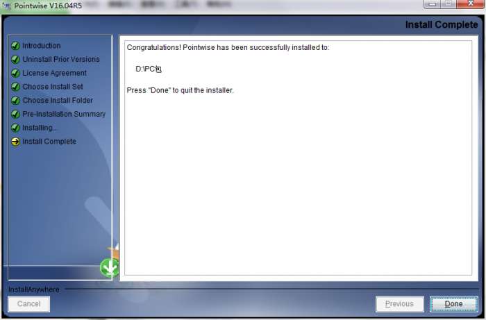 8.点击完成,Pointwise软件安装成功