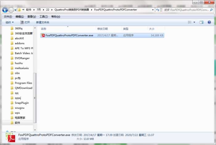 2.解压QuattroPro转换到pdf转换器软件,运行“EXE.文件”