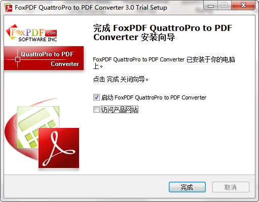 7.点击完成,QuattroPro转换到pdf转换器软件安装成功