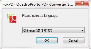 3.双击打开,进入QuattroPro转换到pdf转换器软件界面,选择安装语言,点击OK