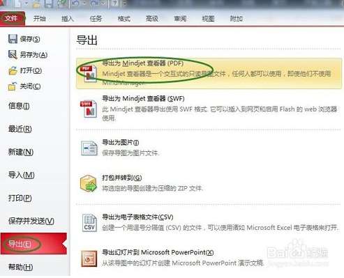 2、点击MindManager菜单栏中的【文件】,在弹出的选项中点击【导出】然后选择导出PDF。