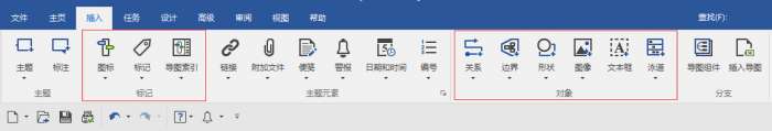 5、您可以点击mindmanager菜单栏中的【插入】,你可以为主题添加特殊标记来对主题进行编码和分类、使用箭头展现主题之间的关系、使用分界线功能环绕主题组或者使用图像说明导图。
