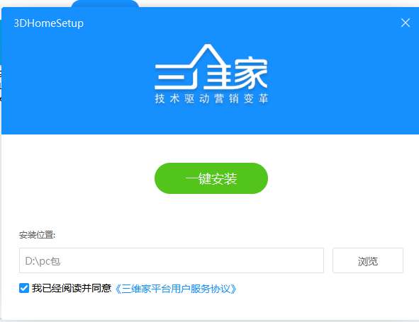 3.双击打开,进入三维家3d云设计软件界面,选择安装位置,点击一键安装