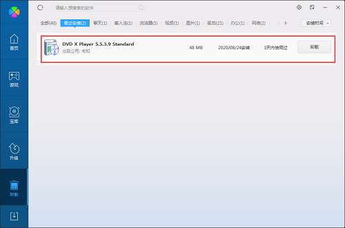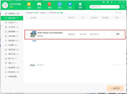 方法二:安装并打开360软件管家,在卸载选项的列表中找到DVD X Player Std,点击卸载即可