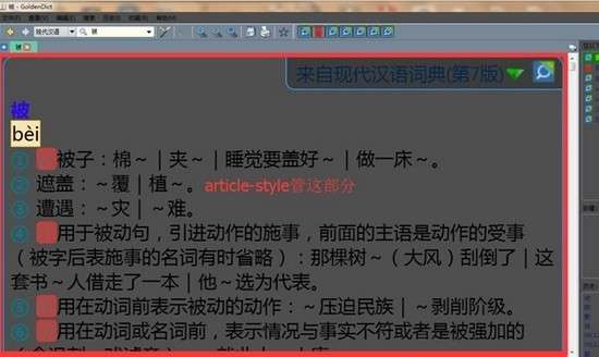 article-style文件是对GoldenDict界面显示字典内容部分的设置,qt-style文件是对GoldenDict界面其余部分的设置。