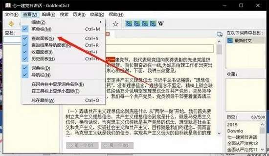 在查看里面勾选上查询面板,这样在左侧我们就可以方便的进行关键字和一些标签的检索了。自带的数据库含有好词妙句,提纲脉络,最新时文计划总结。