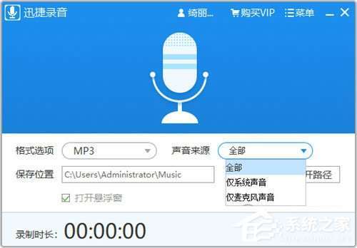 1、支持录制系统声音、麦克风声音等电脑中的一切声音。