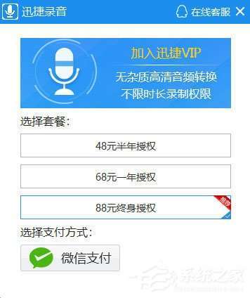 1、首先,打开迅捷录音软件,第一步需要进行账号的登陆,登陆的账号就是小伙伴们开通的账号了,开通VIP以后只需要登陆这个账号就可以体验会员服务了,点击软件上方的“购买VIP”功能选项;