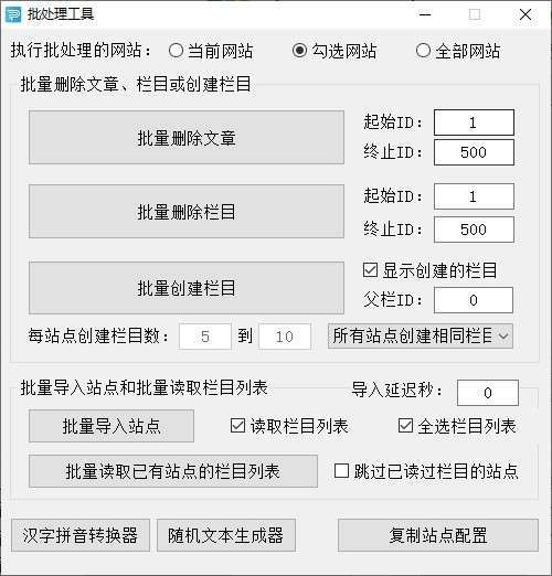 内置批处理,可以批量创建分类、删除分类、删除文章。