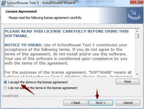 1、下载数据包并解压,双击“Schoolhouse Test Professional Edition.exe”勾选第一项同意协议并点击next