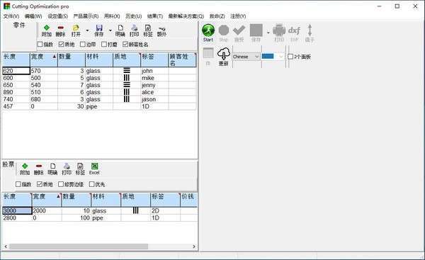 在同一个切割程序中进行一维和二维优化 - 你可以用这个程序进行二维和一维优化。