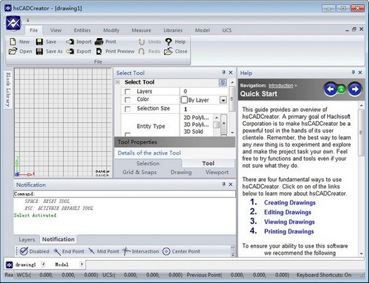 要打开hsCADCreator,请在“所有程序”菜单下单击hsCADCreator。这将启动hsCADCreator。