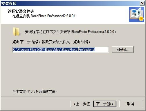 3、下一步选择软件安装目录,默认为“C:Program Files (x86)BlazeVideoBlazePhoto Professional”