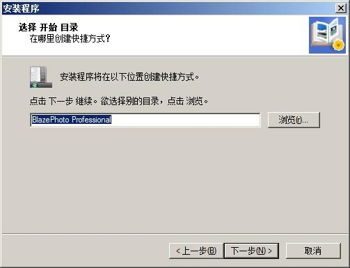 4、选择开始目录名称,默认为“BlazePhoto Professional”