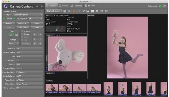 CaptureGRID使您可以精确控制照片的变化。拍摄后,照片可以保存到存储卡中,也可以自动下载到计算机中,或者两者都保存。