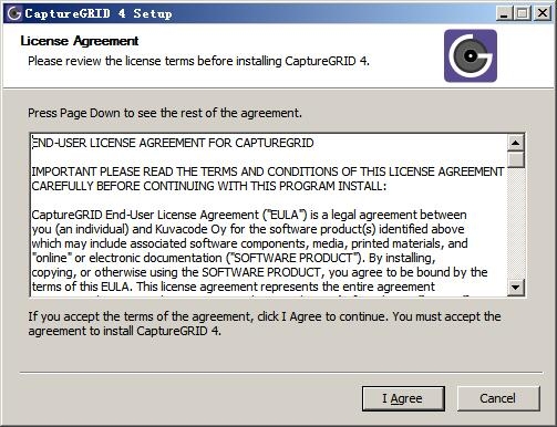 1、双击“capturegrid_win_v4_11.exe”出现协议,选择i agree