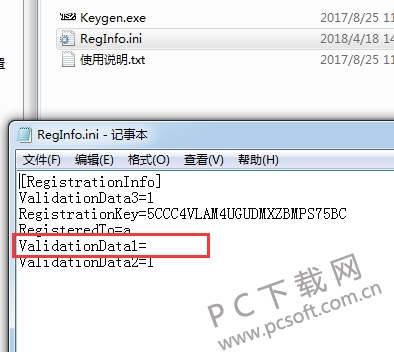 (2)右键单击“RegInfo.ini”,选择“编辑”,在第五行=后面随便添加一个字符,如:ValidationData1=2,添加好后保存再关闭文件。