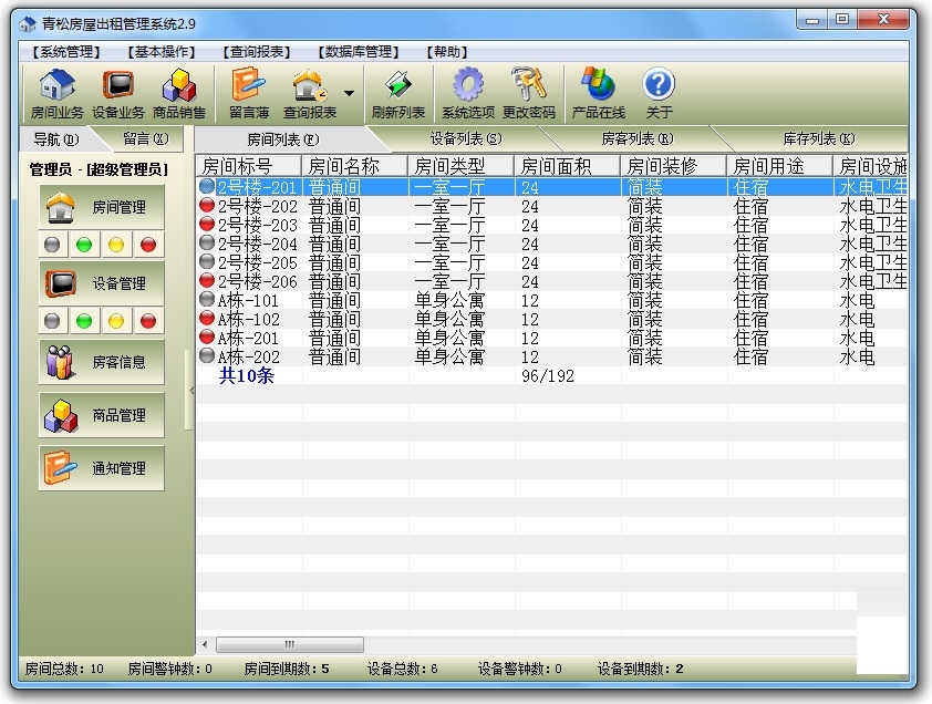 房间的添加、修改、删除及查询。使用初期还可以使用房间批量添加功能快速添加房间。