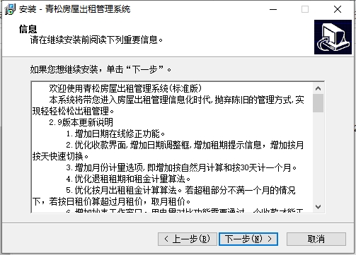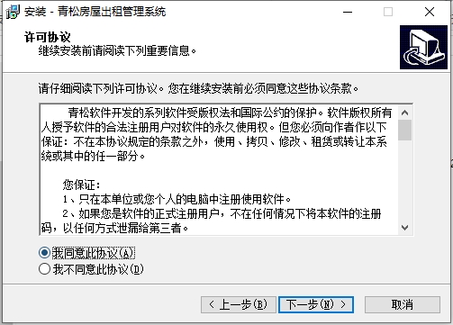 1、双击青松房屋出租管理系统标准版安装文件,进入软件安装界面,点击下一步