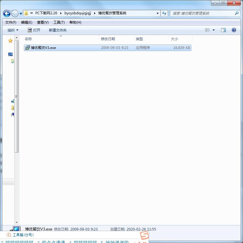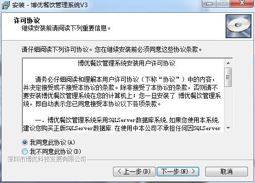 1、这本站将您需要的附件包进行快速的下载,解压之后,点击博优餐饮V3.exe进行快速的安装;
