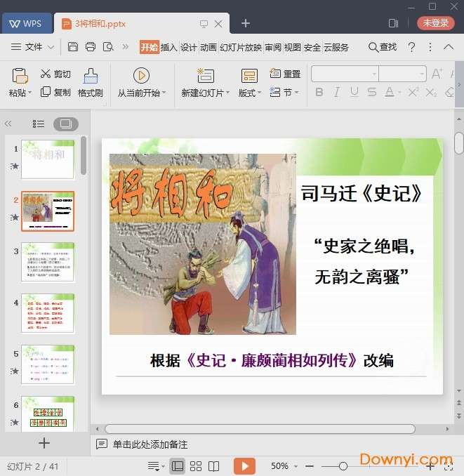 能够帮助教师系统的归纳故事概述,并辅助学生更好的理解《将相和》的宣扬思想及当时所处的历史背景,是一款非常适合老师备课、同学复习的ppt课件