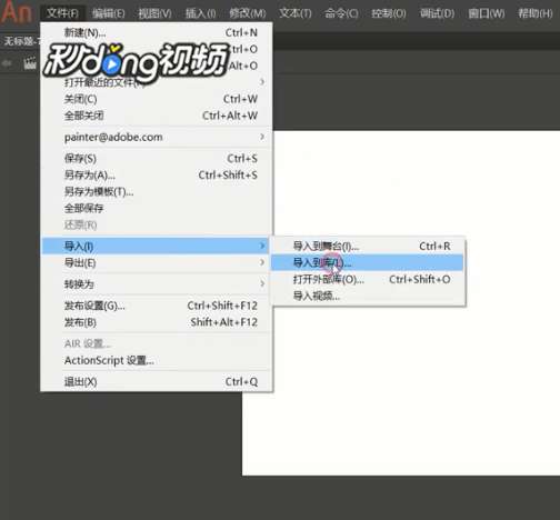 1、打开An软件,点击上方工具栏中的“文件”,再继续点击“导入”“导入到库”,随便导入一个音频文件。